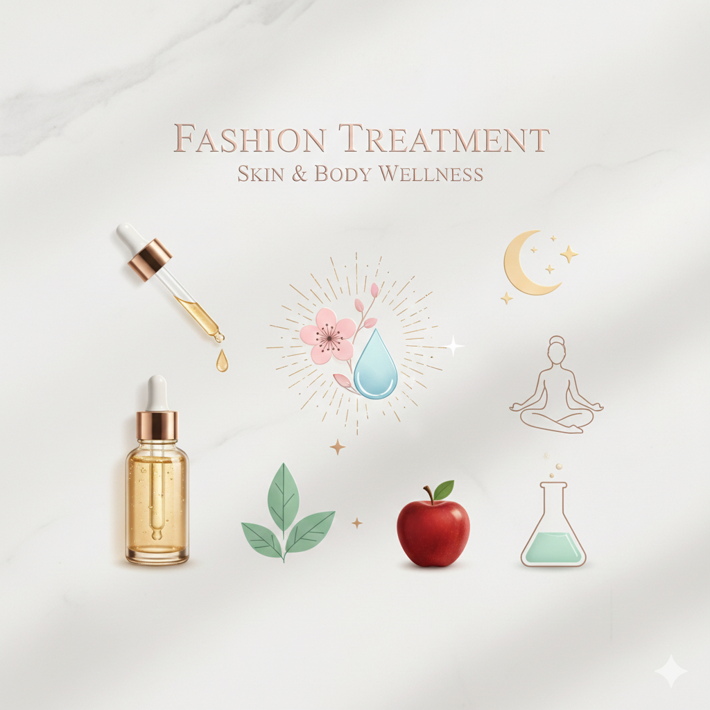 We believe real fashion is an aura that radiates from within. Here, “Fashion Treatment” is a comprehensive methodology for caring for your skin and body like the prized canvas they are. It integrates science-backed routines, nutritional wellness, and confidence-boosting habits.